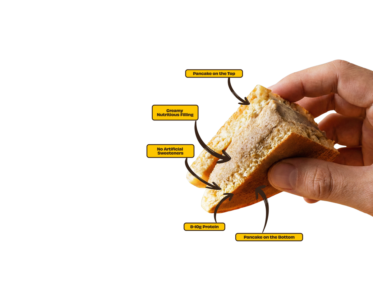 It is a ready-to-eat breakfast sandwich made of two fluffy protein pancakes packed with flavorful fillings. You can eat them straight out of the wrapper with no fork, no knife, and no sticky syrup needed.